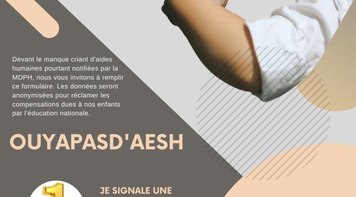 Devant le manque criant d'aides humaines pourtant notifiées par la MDPH, nous vous invitons à remplir ce formulaire. Les données seront anonymisées pour réclamer les compensations dues à nos enfants par l'éducation nationale. En fin de formulaire, vous pourrez laisser vos coordonnées pour être informé.e des actions menées.
